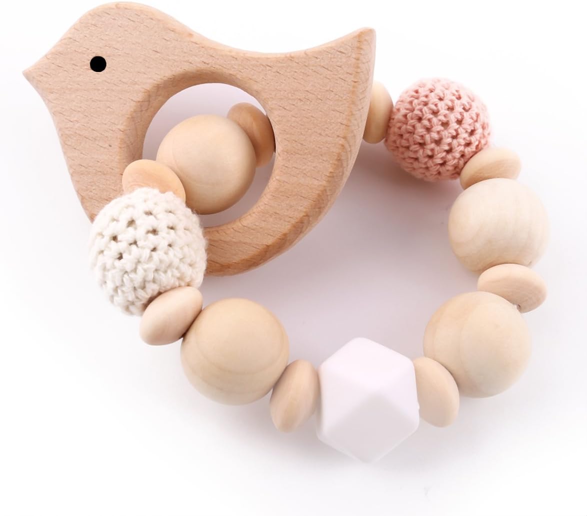 Best for baby Jouet de bébé Hochet Anneau dentition bois montessori Perles de silicone Bébé teether Animal Pendentif DIY Bracelet Bijoux Jouets sensoriels Cadeau