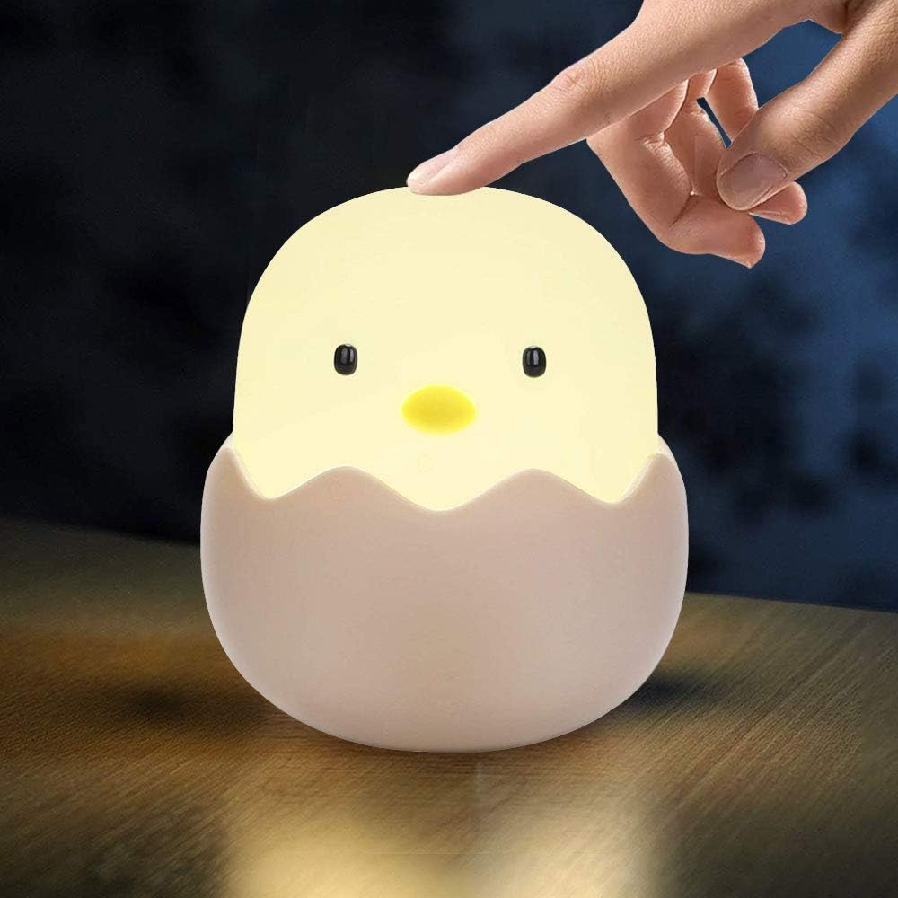 iKALULA Veilleuse Enfant LED, Veilleuse de Bébé Coquille d'oeuf Poulet Emotion Lumière de Nuit USB Rechargeable Silicone Veilleuse Lampe avec Contrôle Tactile - Blanc Chaud