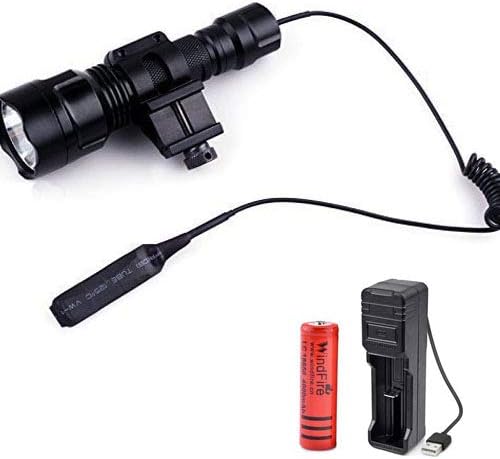 Lampe torche tactique - Étanche - Lumière LED T6 1600 lm XM-L - 5 modes - Batterie rechargeable avec chargeur - Interrupteur tactique déporté - montage sur rail décalé - Convient pour la chasse