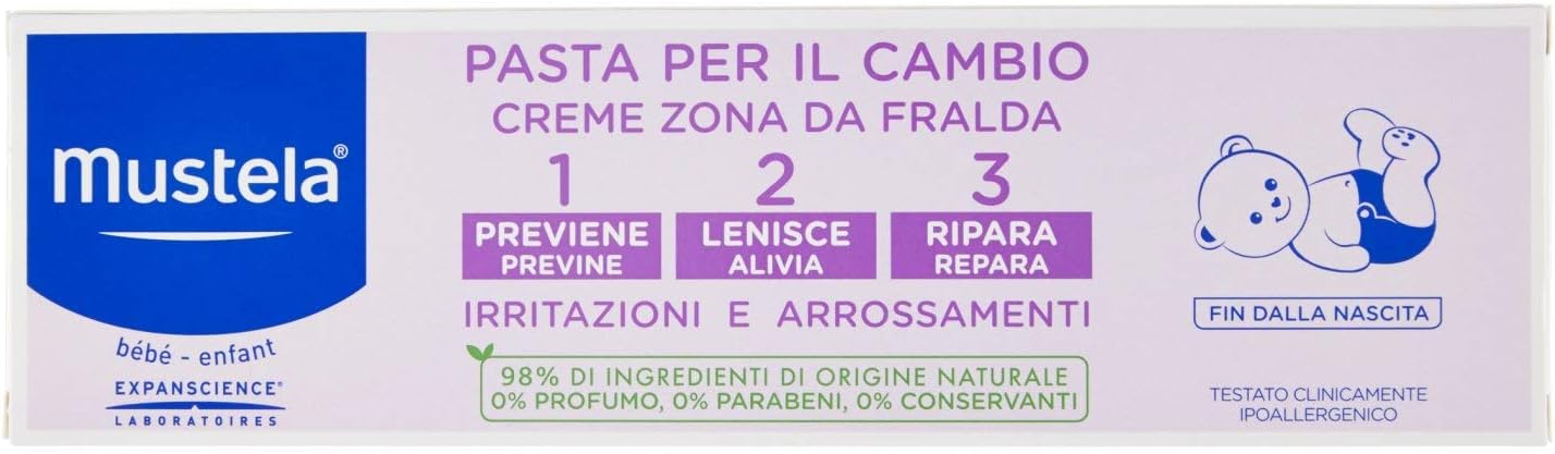 Mustela Baume Crème bébé, spécialement formulé pour les bébés de la naissance * Idéal pour la prévention et les soins pour la première rougeur de l'âne: Protège efficacement et isole la peau des agressions (urine, fèces, couche frotter) à travers sa texture opaque. Limite la croissance des bactéries grâce à sa formule avec Caprylyl glycol. Apaise et adoucit la peau avec de la vitamine B5 et beurre de karité. Favorise la disparition rapide de la première rougeurs dues à la vitamine C. Merci à sa formule protectrice, la crème de baume aide à renforcer la barrière de la peau de votre bébé et de préserver la richesse de votre cellule de la peau.