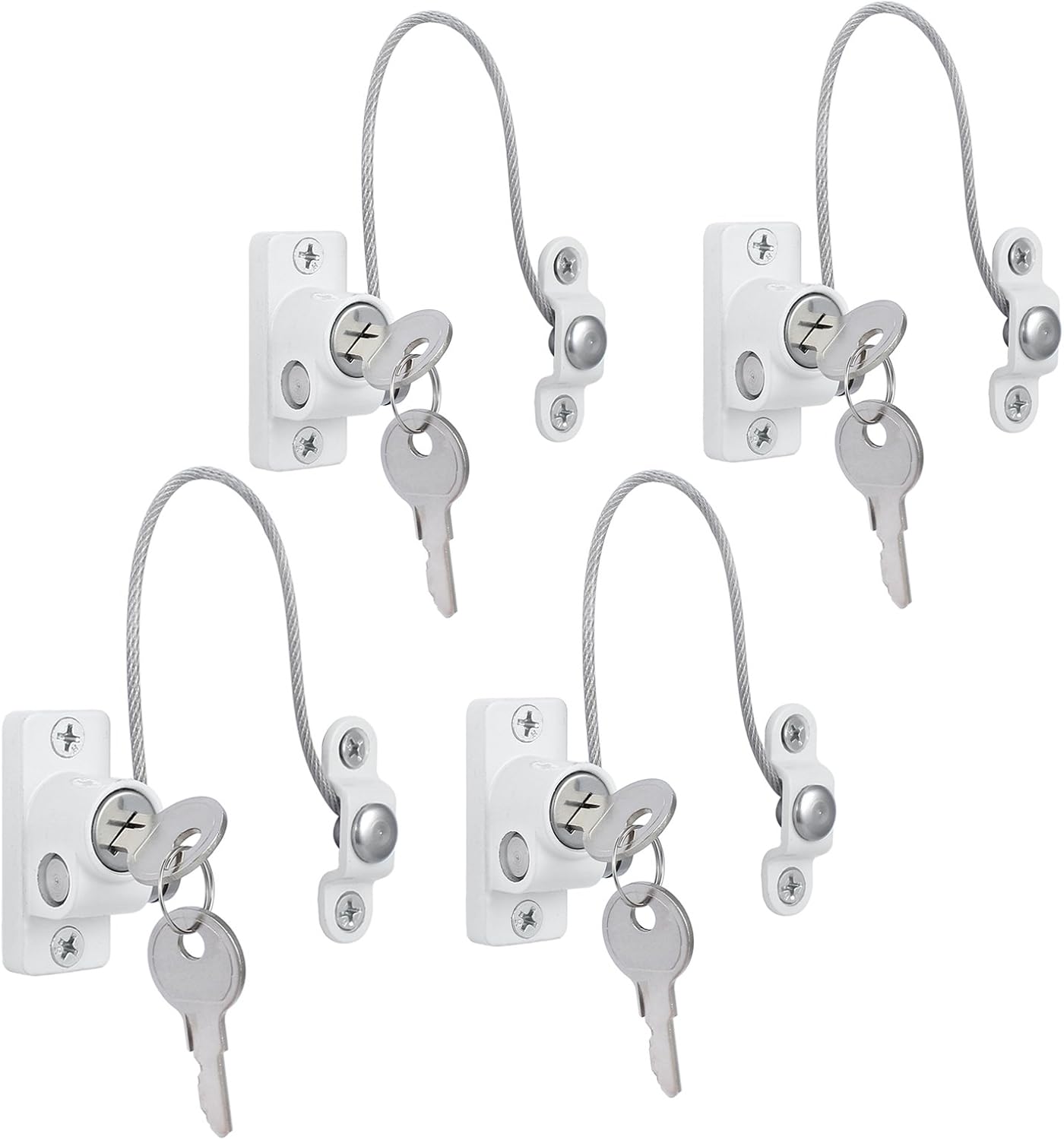 Neoteck Lot de 4 Verrous Entrebâilleurs de Porte et Fenêtre Blancs Avec Vis AutoForeuse et Clés Pour la Sécurité des Enfants