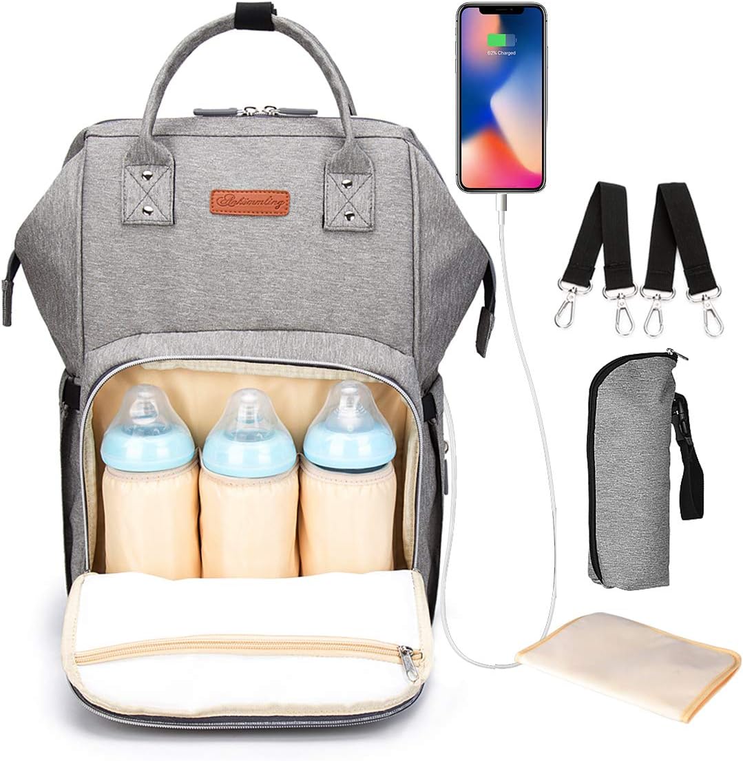 Sac à Dos à Langer Bébé étanche avec matelas à langer, Grand Capacité Sac à Dos et Sac de Voyage pour Mères et Soins des Bébés-Gris