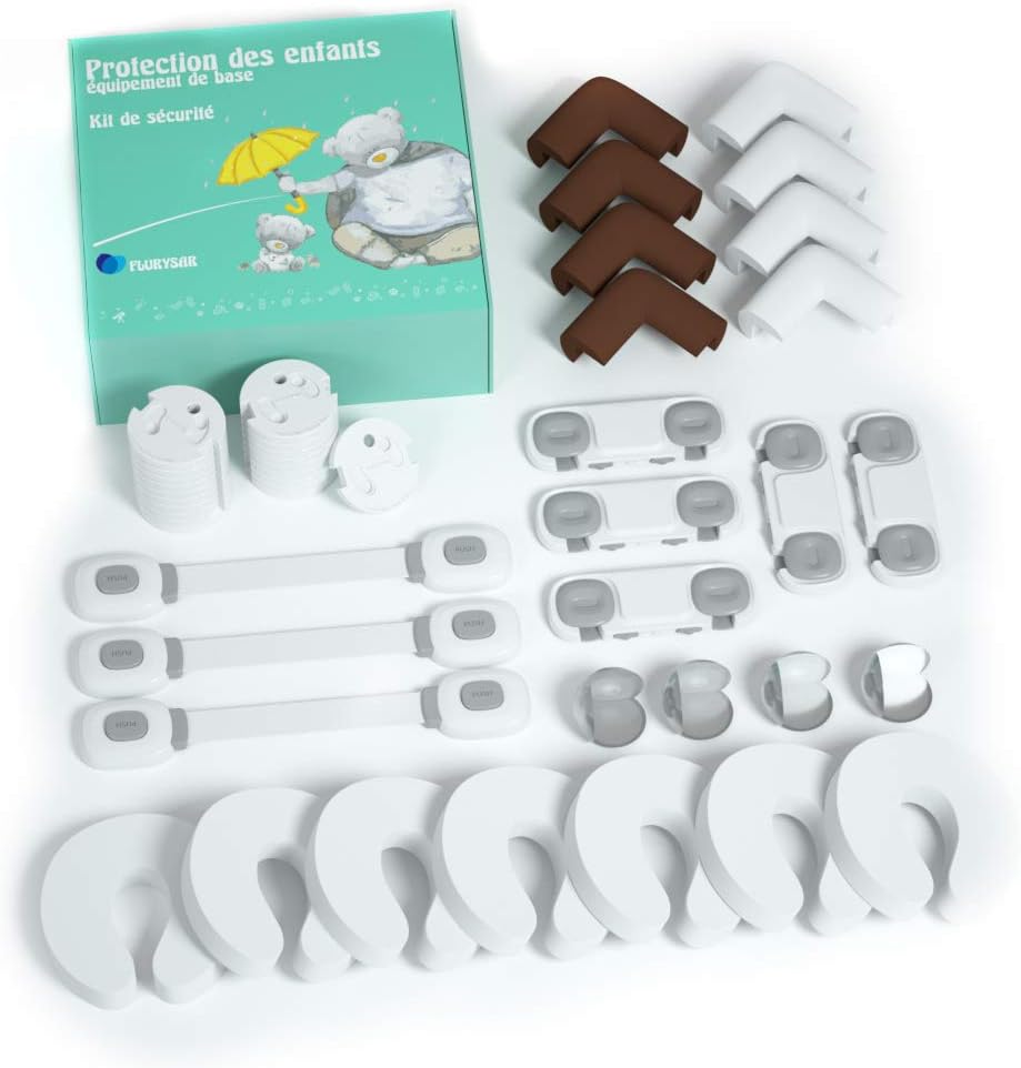 (47pcs) Kit de sécurité pour protection des enfants avec Cache Prise Révolutionnaire Protections Électrique, coins de table, serrures multifonction, Sécurité placard enfants, blocs porte (47)