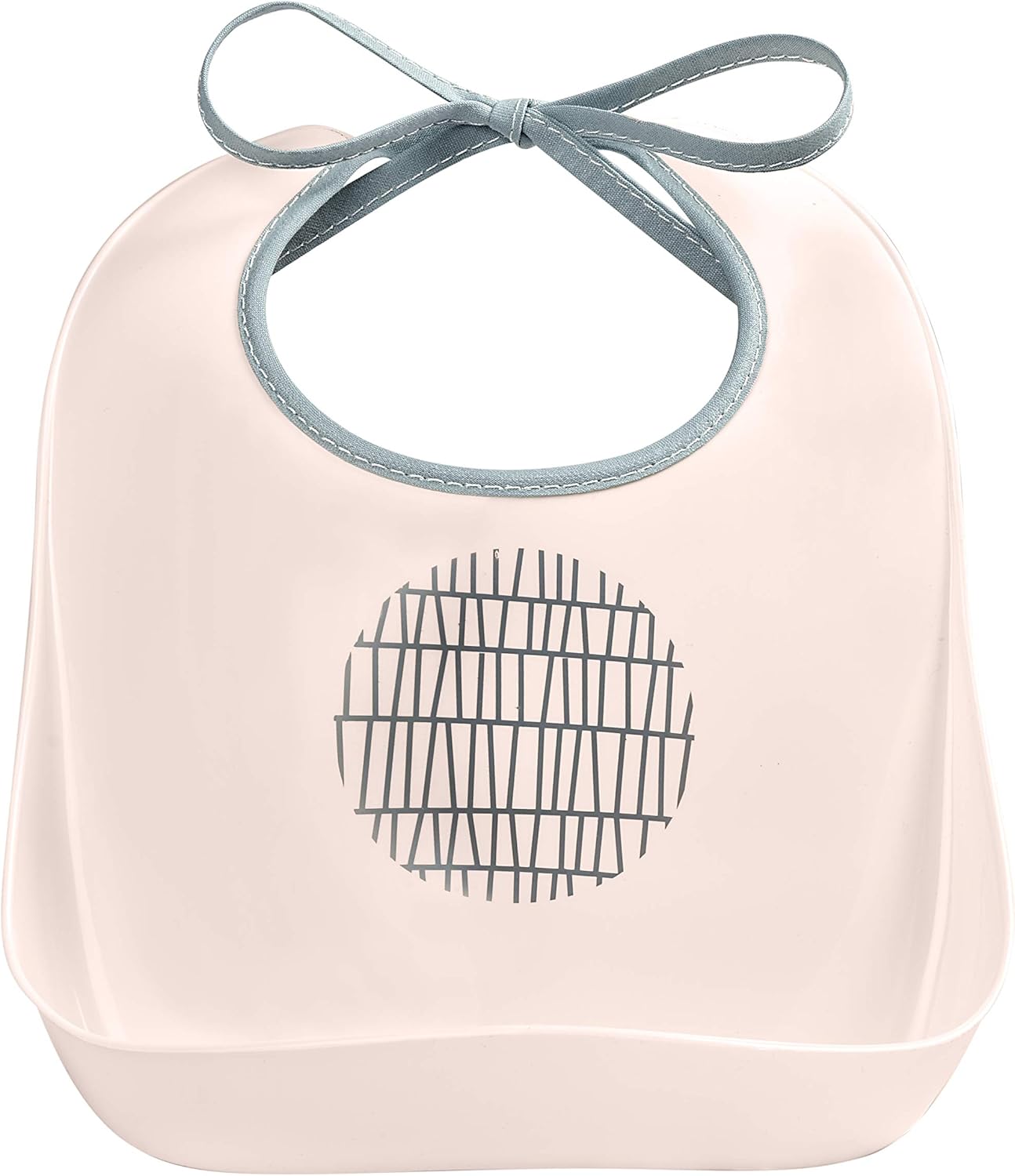 BÉABA, Bavoir d'Apprentissage, Plastique Souple, Récupérateur, Imperméable, Cordon tissu, Motif Pink Grid