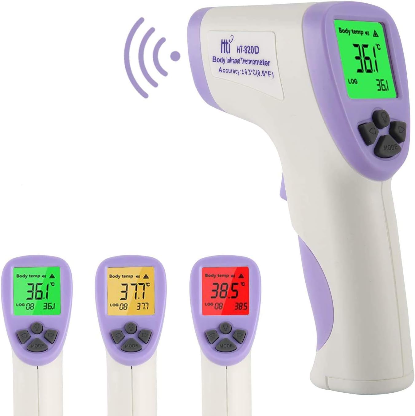 Rétro-éclairage tricolore: rétro-éclairage vert pour une température normale , rétro-éclairage jaune pour une légère fièvre et rétro-éclairage rouge pour une forte fièvre, veuillez le prendre au sérieux.
