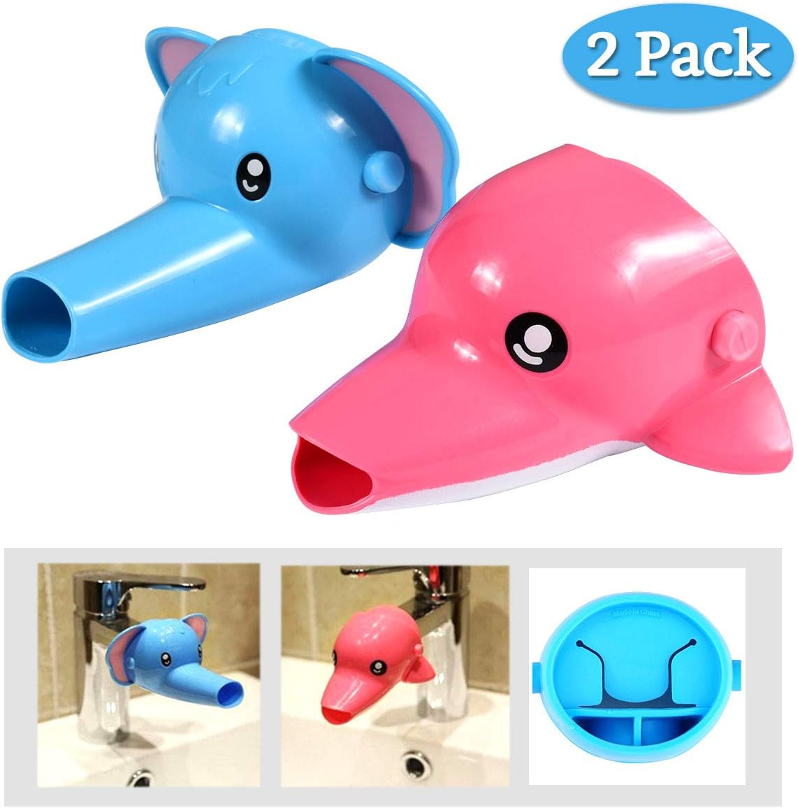 2pièces Robinet Extender, Évier Poignée prolongateur pour Les Tout, Rallonges d'animaux pour robinetterie pour Les Enfants en Bas âge Aide Se Laver Les Mains, Dauphin&Éléphant