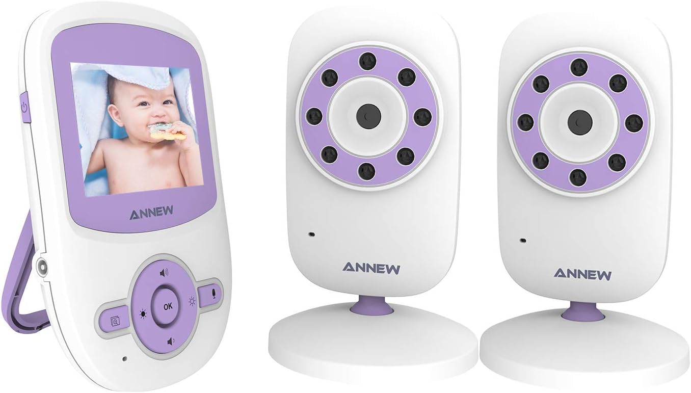 ANNEW Babyphone Bébé Moniteur Vidéo Caméra Bébé Surveillance 2.4 GHz Audio Bidirectionnelle VOX Vision Nocturne Berceuses Capteur de Température (2 Caméra)