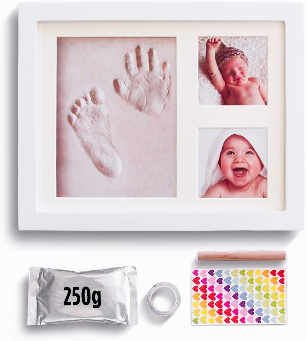 Cadre Empreintes Bébé de 2ème Génération, Cadres en Bois Blanc Avec Argile non Toxique Pour Garçons et Filles, Cadeau de Naissance et Baptême, Souvenir Original Pour Animaux Domestiques