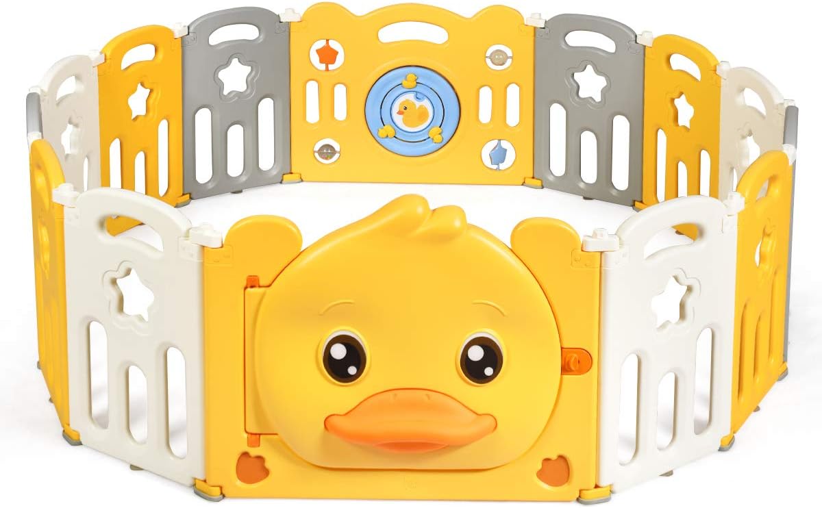 COSTWAY Parc Bébé Pliable Barrière de Sécurité en Plastique avec Jouets et Porte Barrière de Jeux pour Enfants