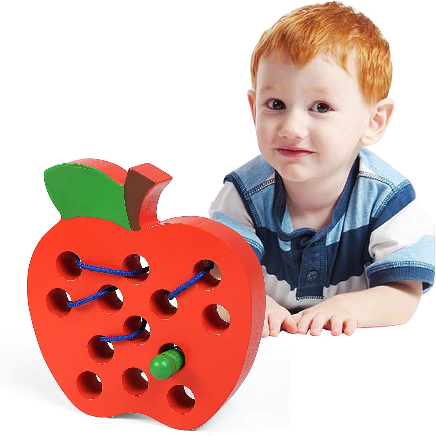 LEADSTAR en Bois Laçage Pomme Fileter Jouet, Jeu Montessori de Patience de Voyage Apprentissage Précoce Pédagogique Motricité Fine Cadeau éducatif pour 1 2 3 Ans Les Tout-Petits Les Enfants Bébé