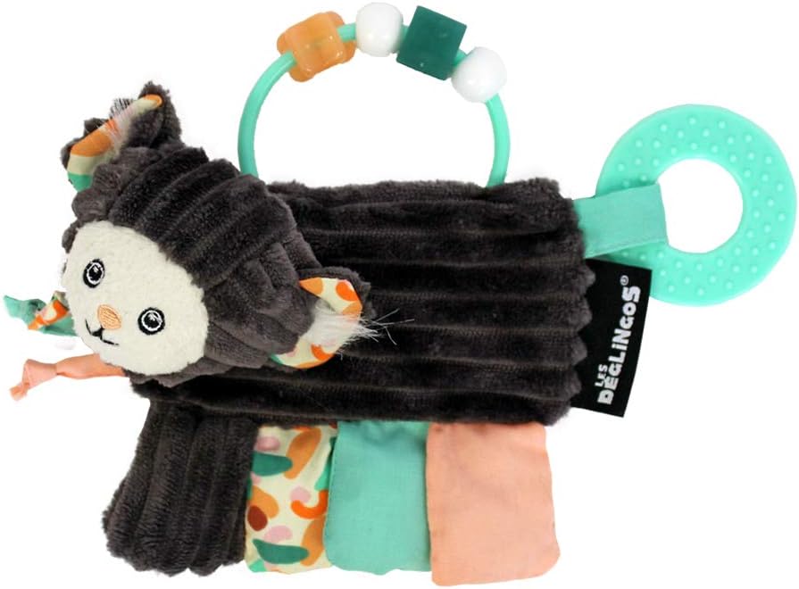 Développement moteur et stimulation visuelle : L'hochet pour bébé Les Deglingos contient des nœuds, du papier bruissant, un pouet pouet, un petit miroir et un anneau de dentition afin de stimuler la curiosité de votre bébé avec les différents bruits, couleurs et textures !