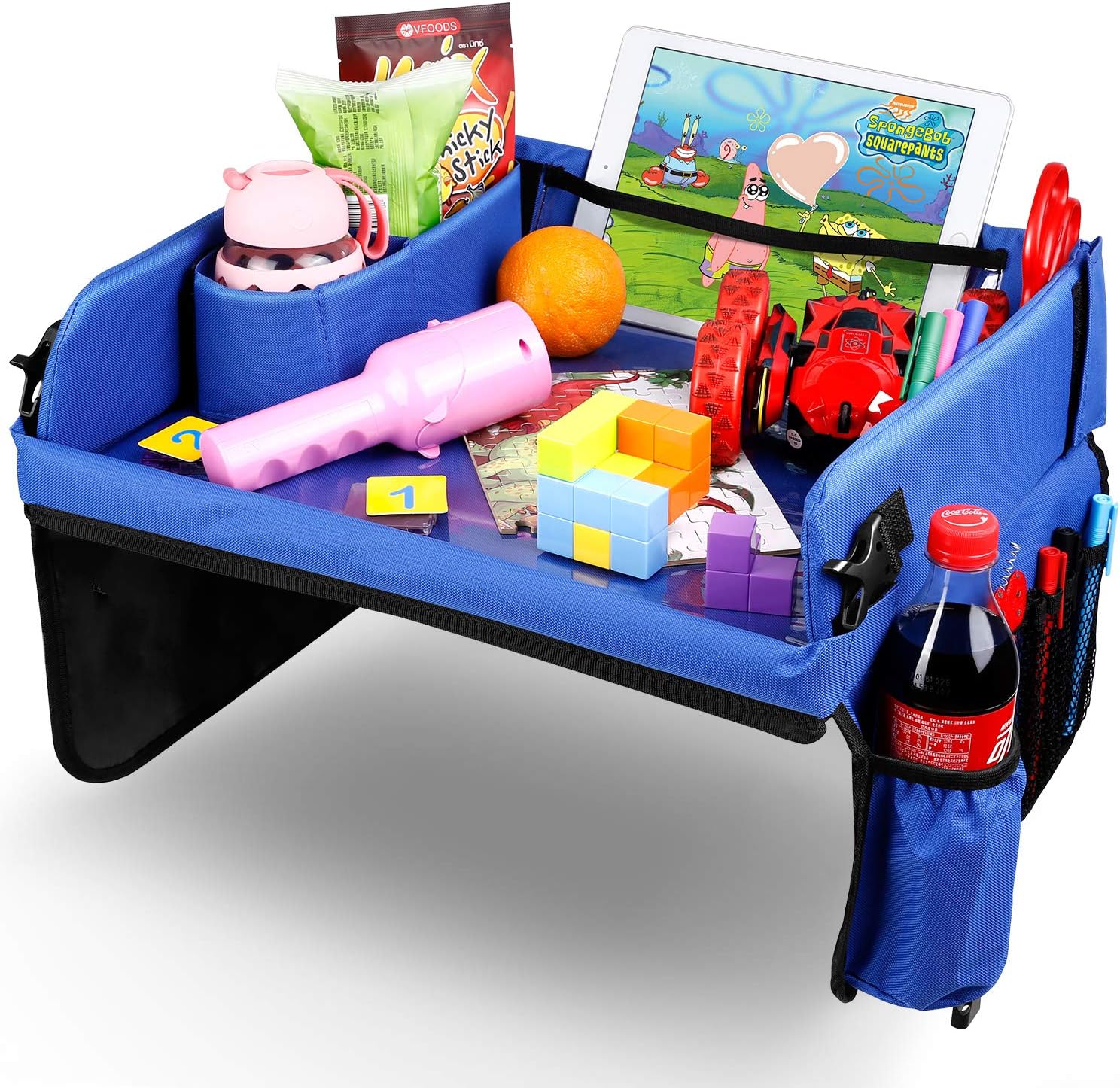 Amzdeal Plateau Voiture Enfant Pliable, Plateau de Voyage pour Enfant de Grande Espace de Stockage, Tablette de Voyage avec Film Transparent Application de Siège Voiture, Avions, Train, Poussette